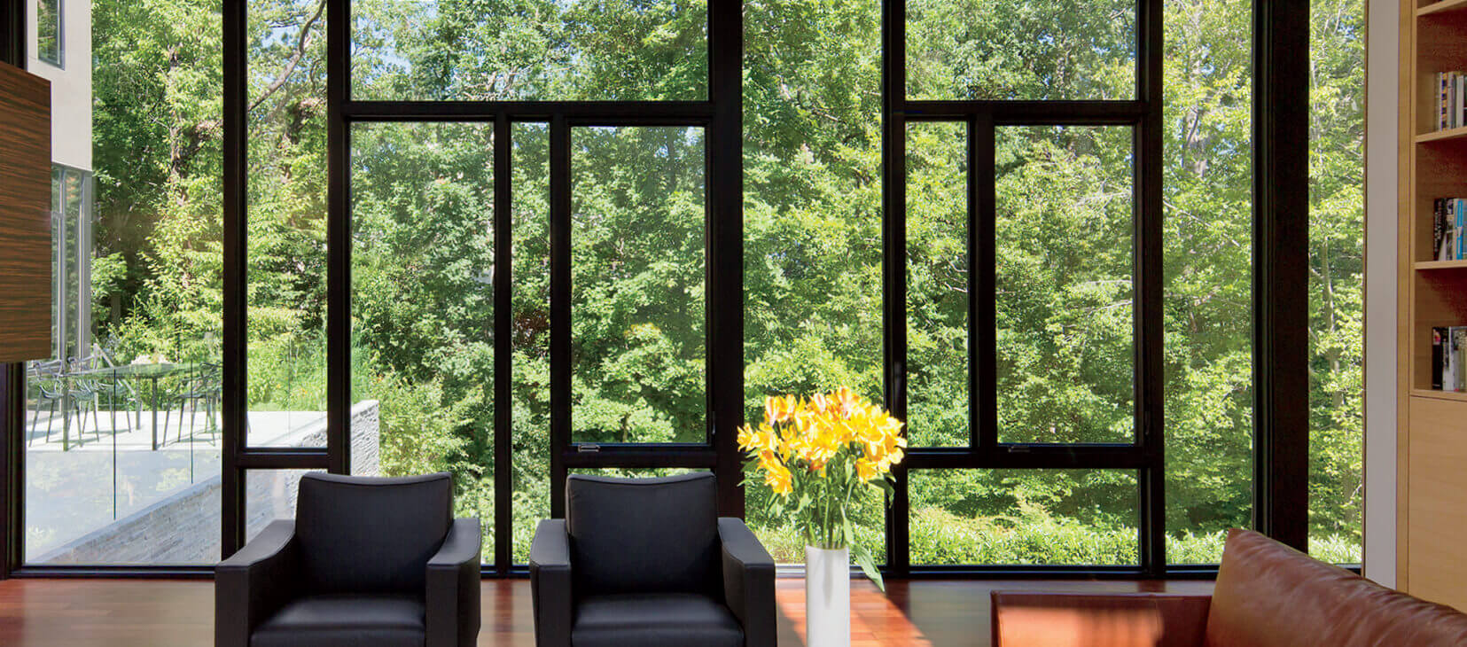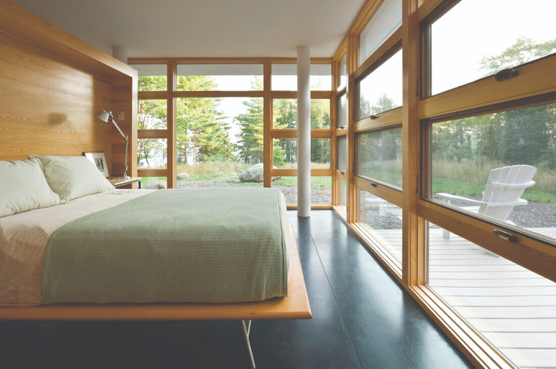 An awning window hinges at the top and projects away from the home. A casement is a similar style of window, except it hinges on the side. Awnings and casements come in two styles: push-out, which you manually push open and pull closed with a cam handle, and the crank casement, which has a roto gear mechanism that you turn to open and close the window. One challenge with the push-out style casement is that it requires a hinged screen or no screen so that the window can be operated.