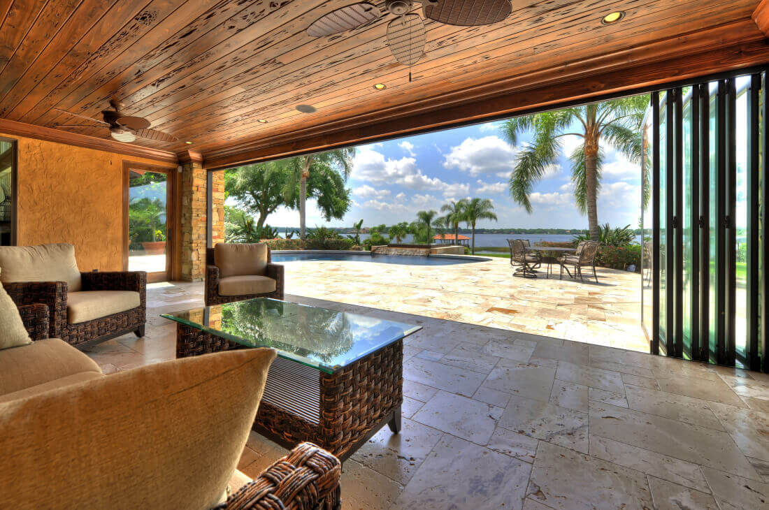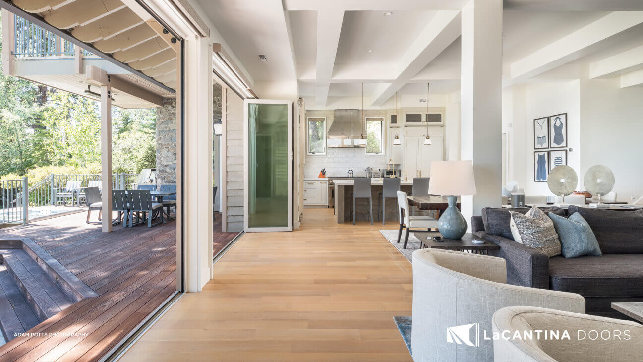 Folding doors essentially create a window wall that folds in an accordion style towards one direction. When fully folded, they create a continuous space between the house and the backyard for indoor-outdoor living. Due to the single track, they are wonderful for remodeling your living space. When closed, they let lots of natural light into the house and allow for easy access to the backyard through the leading door panel, which can operate as a single swing door when the rest of the panels are locked. For inspiration, check out our project in La Jolla that uses LaCantina bifolds to create an indoor-outdoor entertaining area.