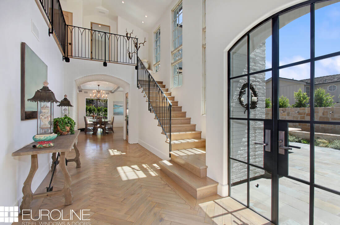 A true French casement, or door, has no framing between the two windows, or door panels, when in the open position.  The astragal is placed on the primary operating side for water and air protection. Often confused with a mulled double casement or double door which has framing separating every window, or door, sash.  Due to the engineering of these style of doors and windows the overall net frame size will not exceed 76 inches for windows, and 84 inches for doors.  Typically, they will not be narrower than 36 inches for windows and 50 inches for doors.