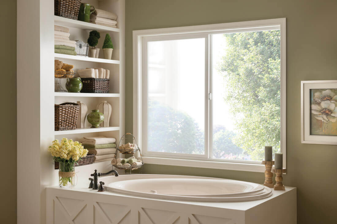 Gliding, or sliding, windows are one of the most common window types found in American homes and are typically made of vinyl, fiberglass or a composite material. A single slider has one fixed panel and one panel that slides to the left or the right. A double slider has two operable panels, allowing more circulation to come through the window. Gliding windows are a great option for windows that face frequently trafficked areas because they don’t create a risk of people running into them.